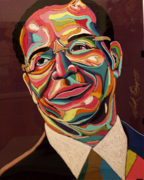 Eclectic Energy: The Art of Mack and Malik Bishop'' is a striking father and son exhibition celebrating the heroes and richness of the African American experience. This family duo has a unique approach to mixed media, using a variety of mediums to express their symbolic exploration of social, cultural and political themes. These uncommonly spirited compositions incorporate a color rich explosion of acrylics, soft pastels, wood, glass, metallic gold ink, glitter and found objects such as doors, reflecting a wide range of stylized techniques.