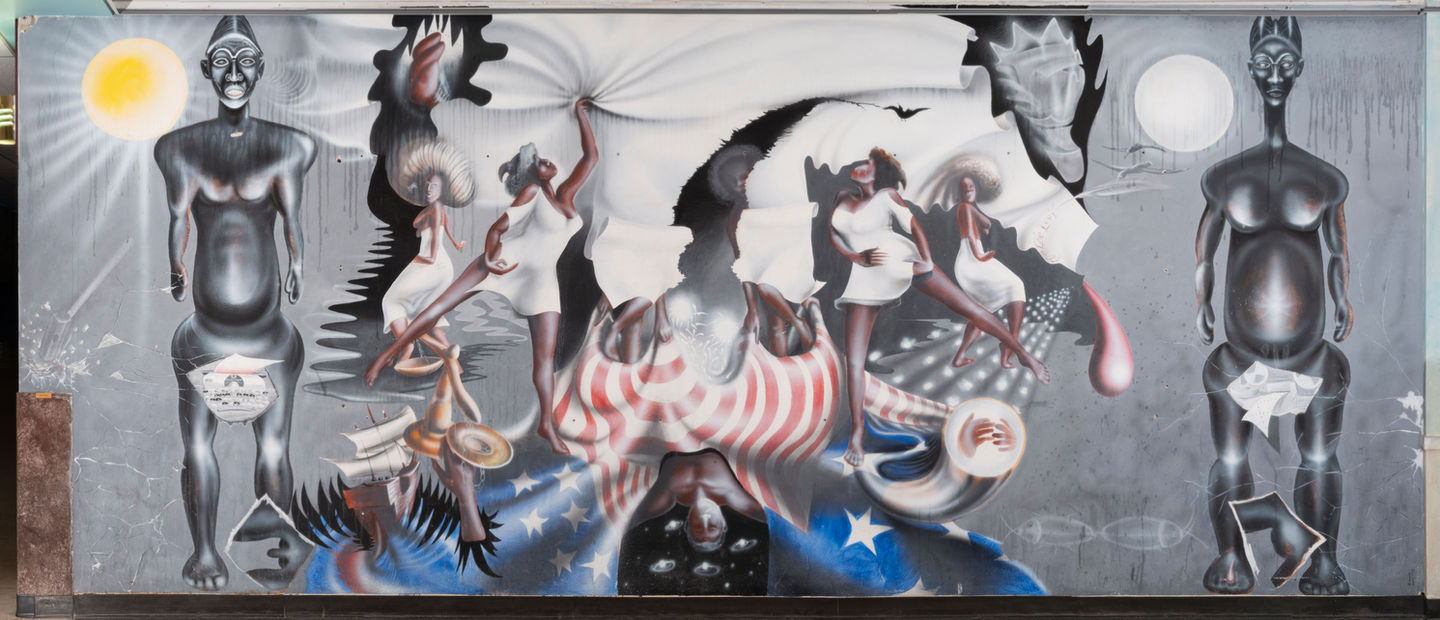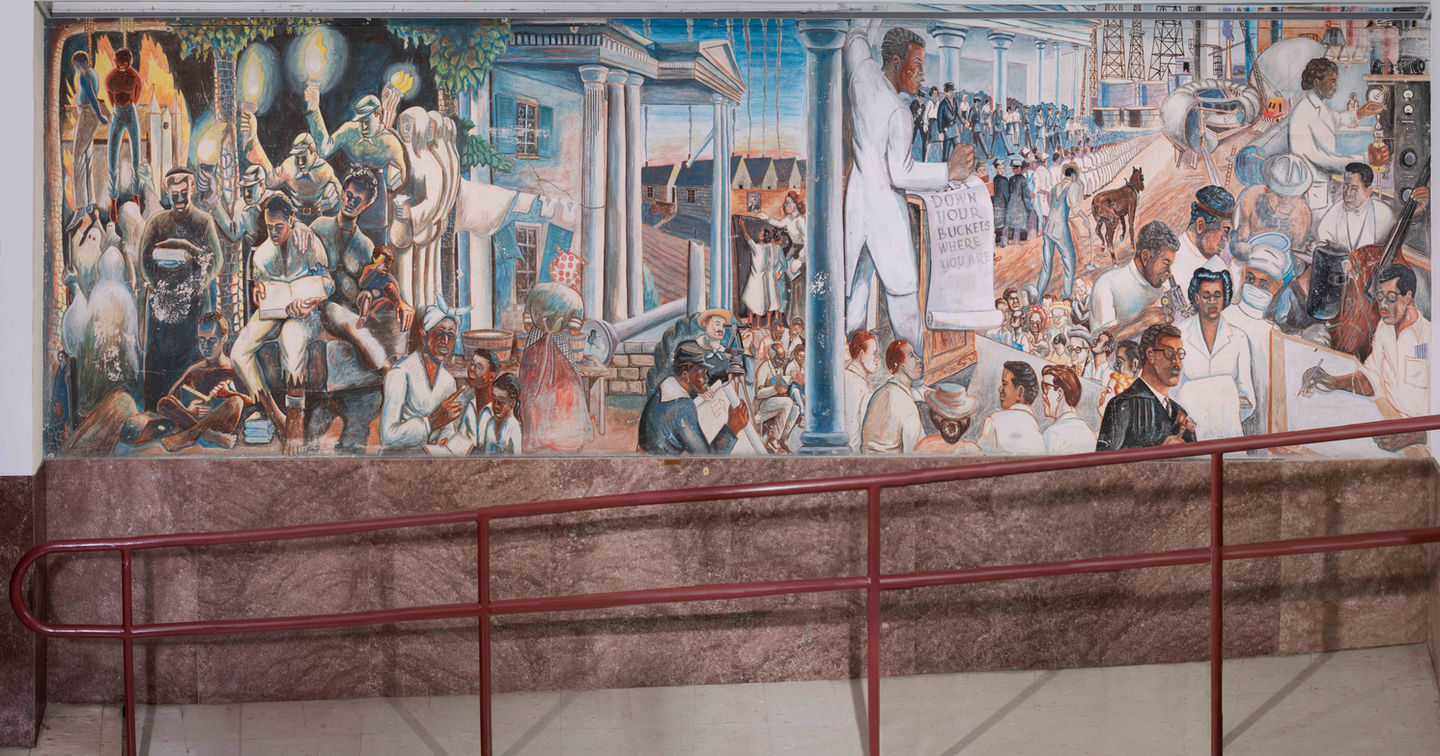 More than 120 student murals adorn the walls of Texas Southern University’s Hannah Hall. From the 1950s to 2010s, senior TSU art majors, hailing from Texas to Thailand, painted the building’s walls as a crowning achievement of their undergraduate studies. The Hannah Hall murals serve as a visual archive, providing a lens into the experiences, worldviews, and imaginations of young, Black artists. No other university, HBCU or otherwise, has a collection of student murals rivaling the quality nor quantity of the Hannah Hall murals.