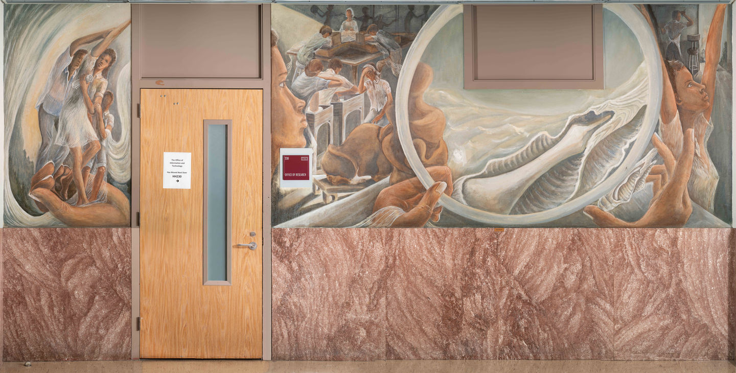 The mural program was the brainchild of Dr. John T. Biggers, who lobbied TSU president Dr. Samuel M. Nabrit to allow his senior art majors to paint the walls of what was then the only academic building on campus. Dr. Biggers came to TSU from Hampton University, where he had assisted Charles White, his teacher, with a mural that he created specifically for Hampton’s campus. While Dr. Biggers demanded quality, he never censored students’ expression and the murals cover a range of topics including politics, religion, nature, futurism, and rural life in the South.